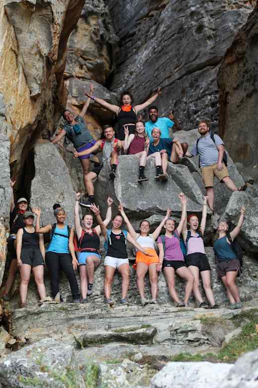 People taking pictures on rocks.